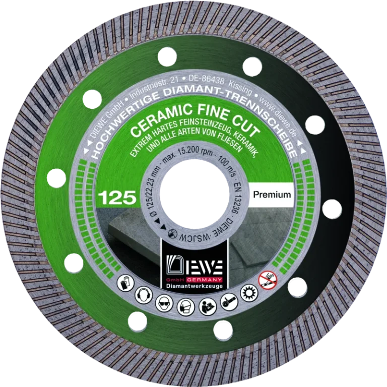 The Ceramic Fine Cut is perfect for cutting extremely hard porcelain stoneware. With its continuous cutting rim and segment technology, it enables fast and clean cuts.