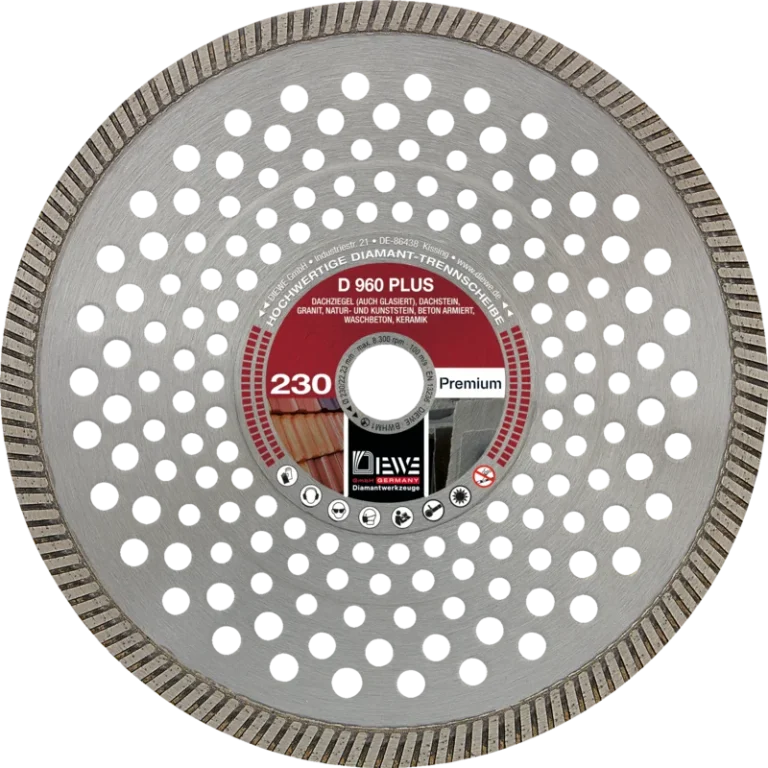 The D 960 Plus diamond cutting disc stands out thanks to its construction, providing noise reduction and self-cooling in dry cutting. With high performance and a long service life, it’s the ideal solution for precise cuts in roof tiles, glazed roof tiles, roofing stones, and granite.