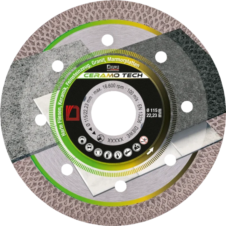 Qualitativ hochwertige Fliesentrennscheibe mit verstärktem Tragekörper.