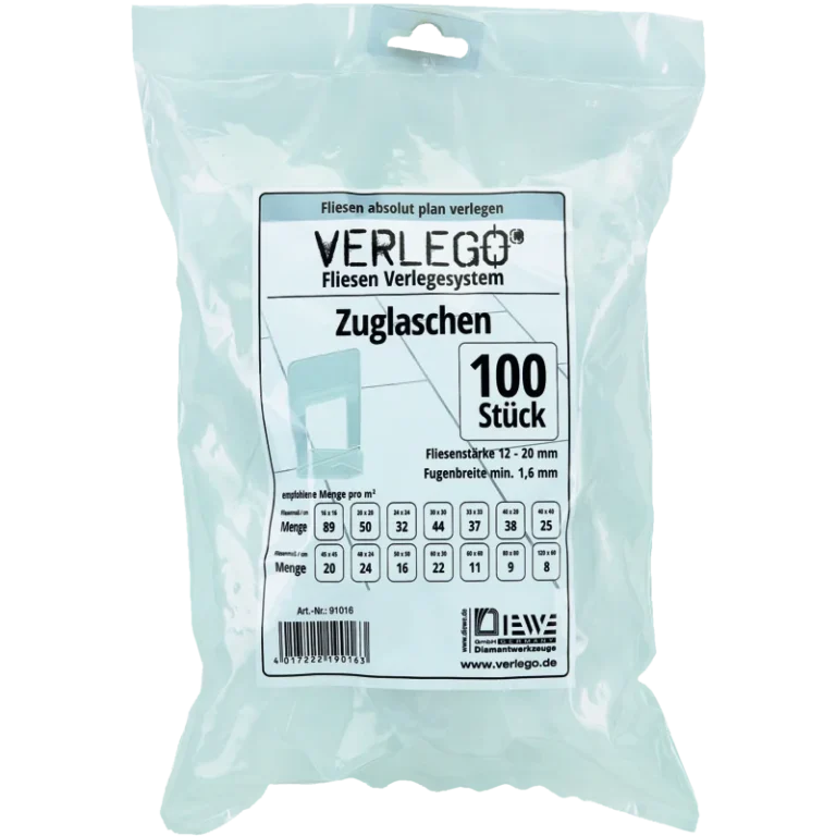 Die Laschen sind für Fliesen mit einer Stärke von 12-20 mm geeignet.