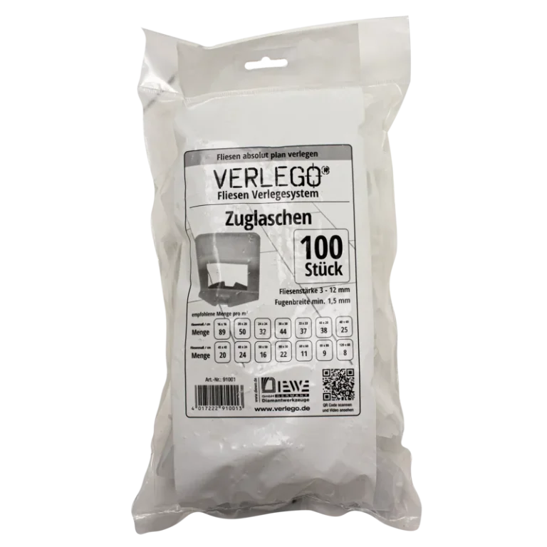 Die Laschen sind für Fliesen mit einer Stärke von 3-12 mm geeignet.